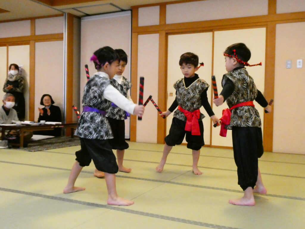 令和8年1月22日(木)社会福祉協議会沖館地区の主催行事に年長さんが参加し、おゆうぎと歌を披露してきました。
